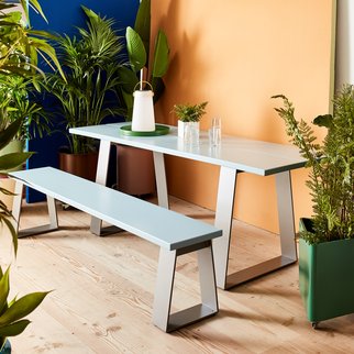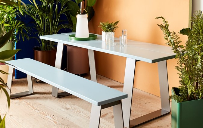 For indoor use, opt for the lacquered ply top for both table and bench.