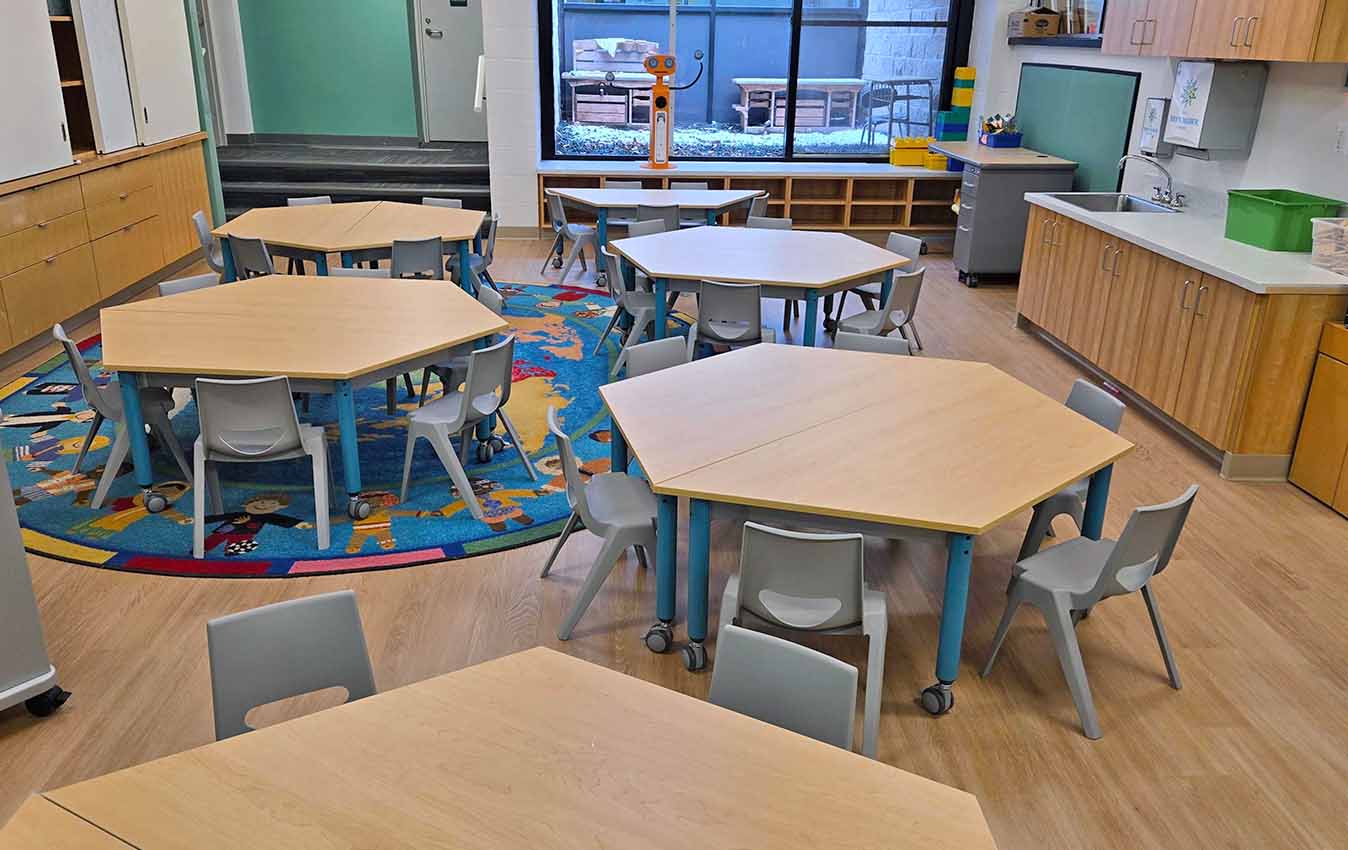 Flexible early years classrooms support young learners by encouraging play-based exploration, collaboration, and movement, helping children build social skills, independence, and a love of learning.