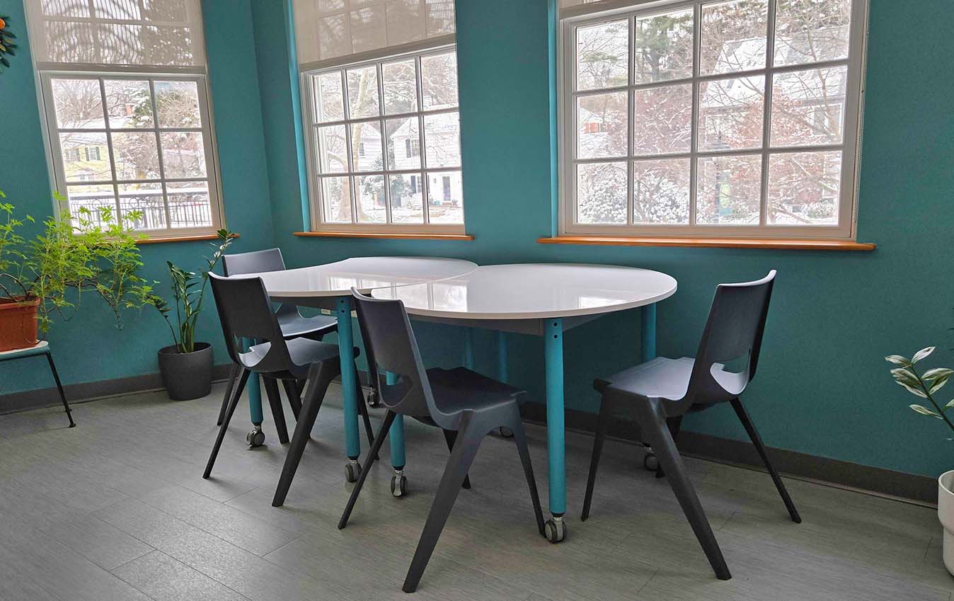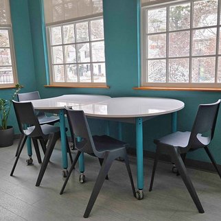 Its lightweight and easily movable design allows faculty and students to quickly reconfigure rooms for different pedagogical approaches.