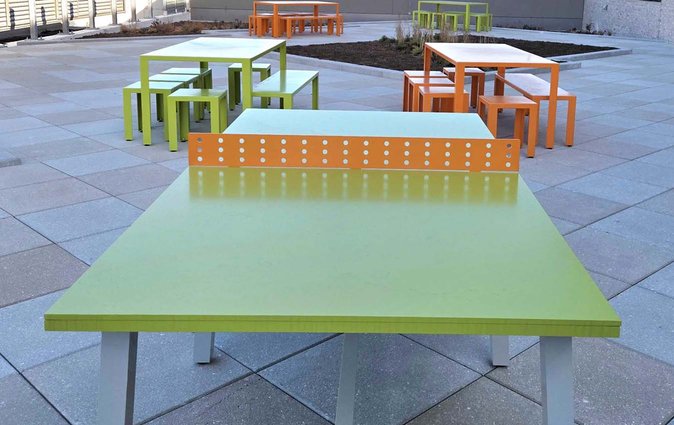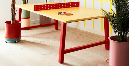 Ping-Pong is equally at home inside, enhancing interior spaces with any RAL colour combination to suit. And when it’s time to get back to business, by removing the bolt-on net, Ping-Pong transforms into a meeting table.