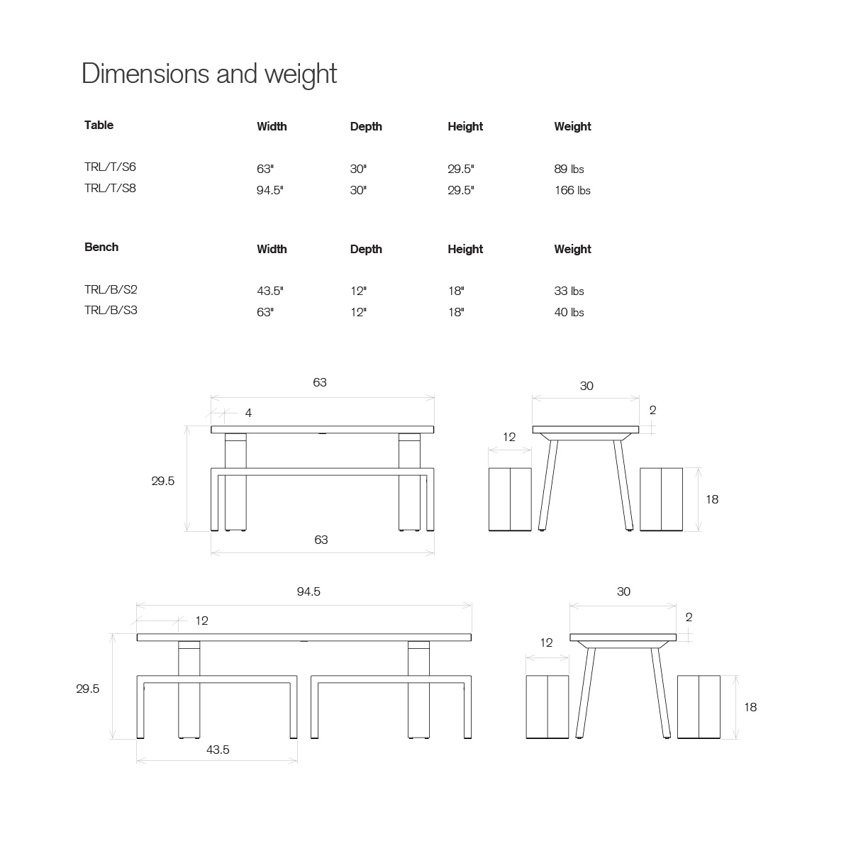 The solid table-top surface has been specifically designed to prevent wind from creating any uplift, making Trestle an ideal option for use on exposed terraces and balconies. For added wind resistance, weights can also be added inside the tube legs of the structure once installed, and removes the need for bolting down. Trestle can be left outside all year round.