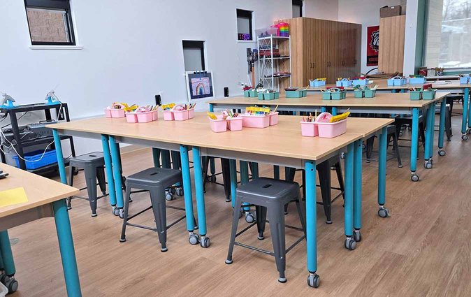 Standing-height design supports active, hands-on learning, collaboration, and easy movement during projects, experiments, and creative work.